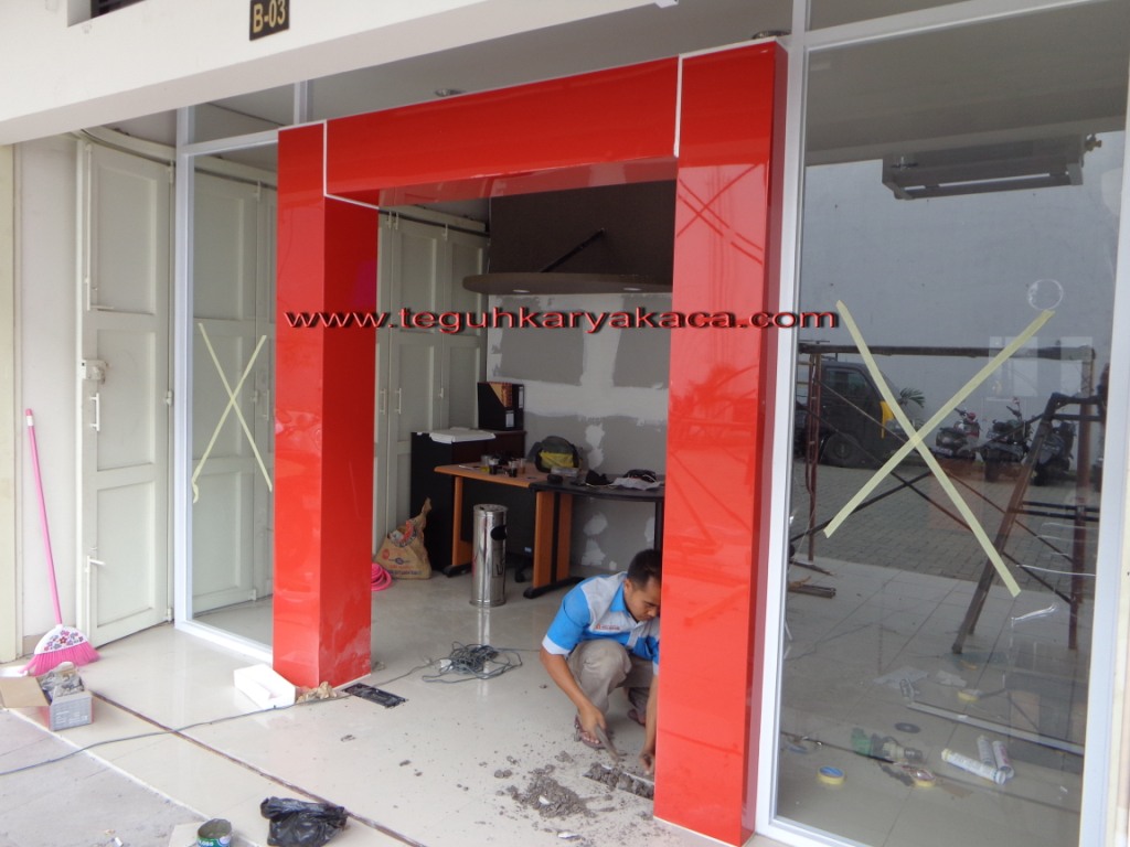 Apakah anda membutuhkan Pintu kaca Floorhing dan ACP ( aluminium composite panel ) di bandung dan purwokerto? sebagai gawangan/tiang pintu kaca, kami aplikasikan pada sebuah Ruko di kawasan cimahi. Untuk ACP sendiri, untuk pemilihan warna dan merk, kami serahkan kepada konsumen, karena terdapat beberapa varian warna ACP yang umum digunakan di pasaran. Dan pada kali ini kami gunakan warna merah dengan Merk Seven.